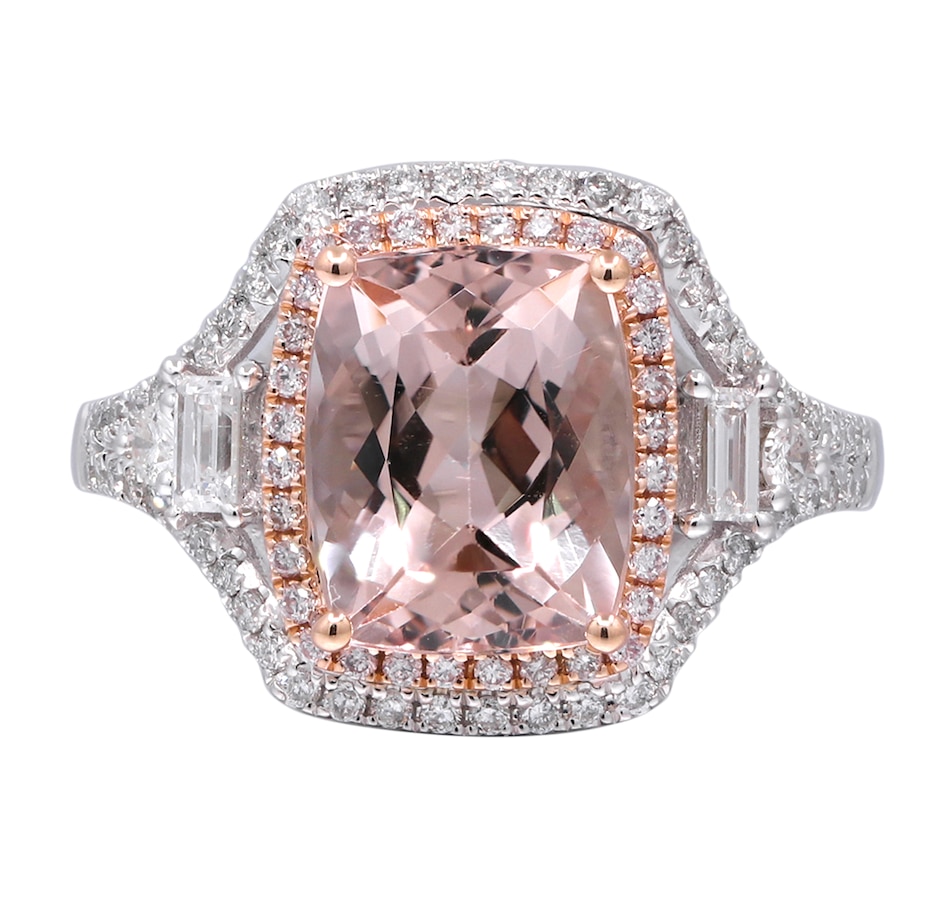 • (1) 8x10mm cushion cut, prong set & faceted morganite (2.56 av. ctw)