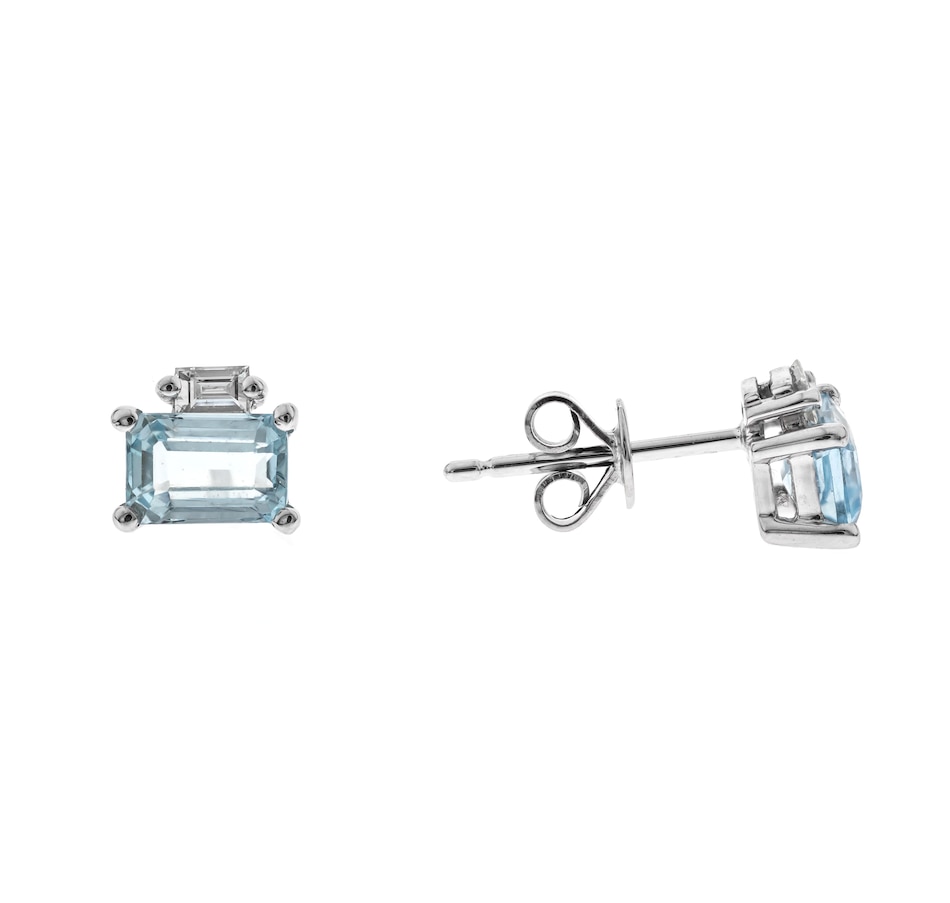 14K White Gold Aquamarine And Diamond Stud Earrings