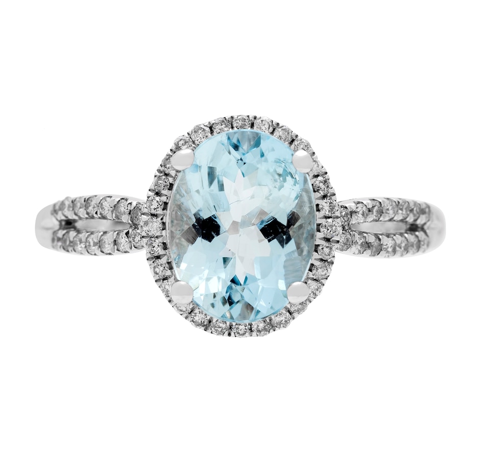 • (1) 9mm x 7mm oval shape, prong set and faceted aquamarine (1.67 av.ctw)