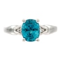 • (1) 8mm x 6mm oval shape, prong set and faceted blue zircon (4.2 av. ctw)