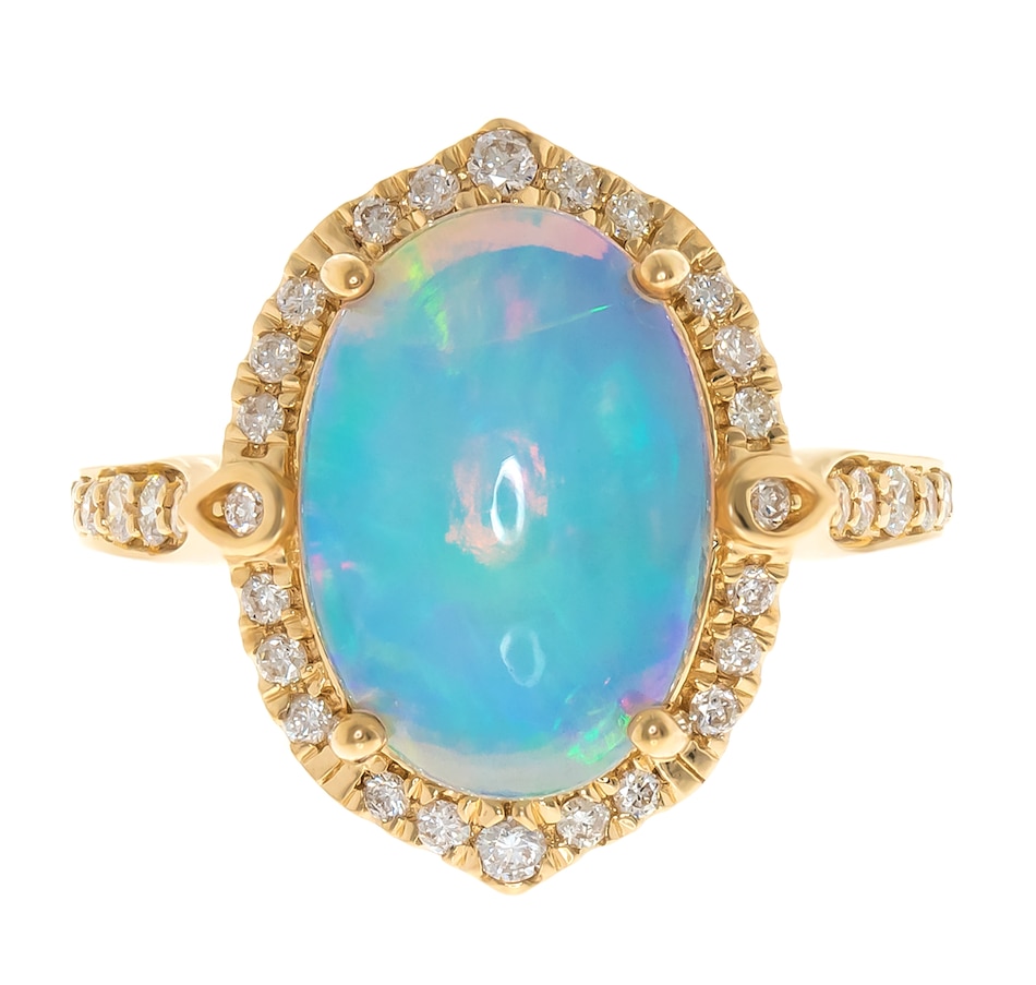 • (1) 10 mm x 14 mm oval, prong-set Ethiopian opal (3.803 av. ctw)