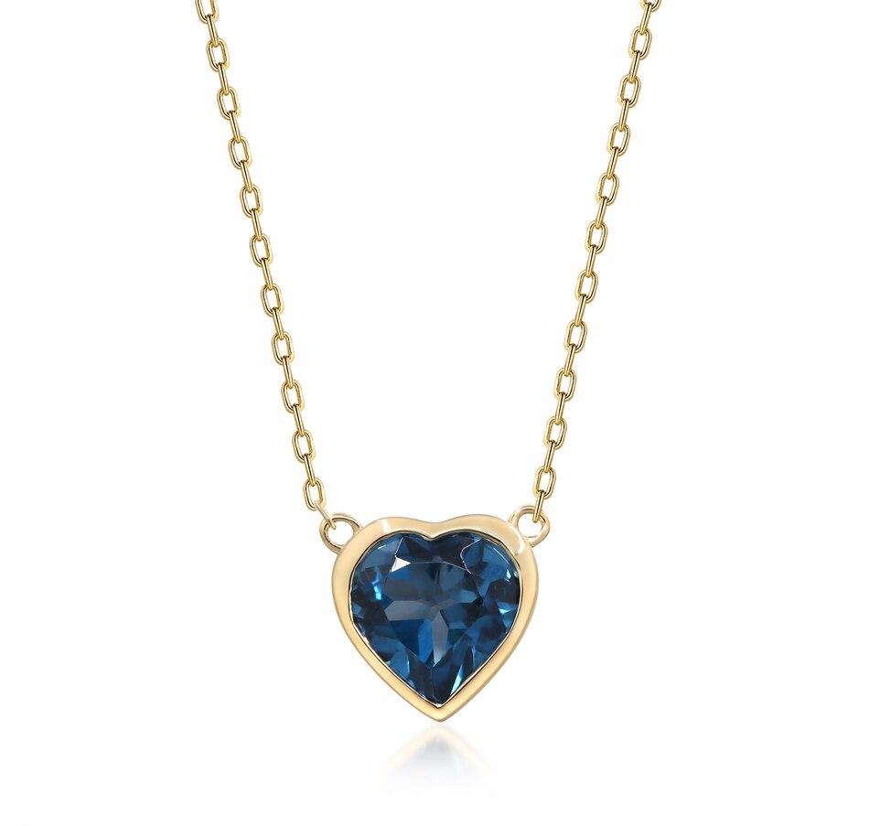 Centre your look in brilliant, vibrant style with this London blue topaz heart pendant front Cirari.