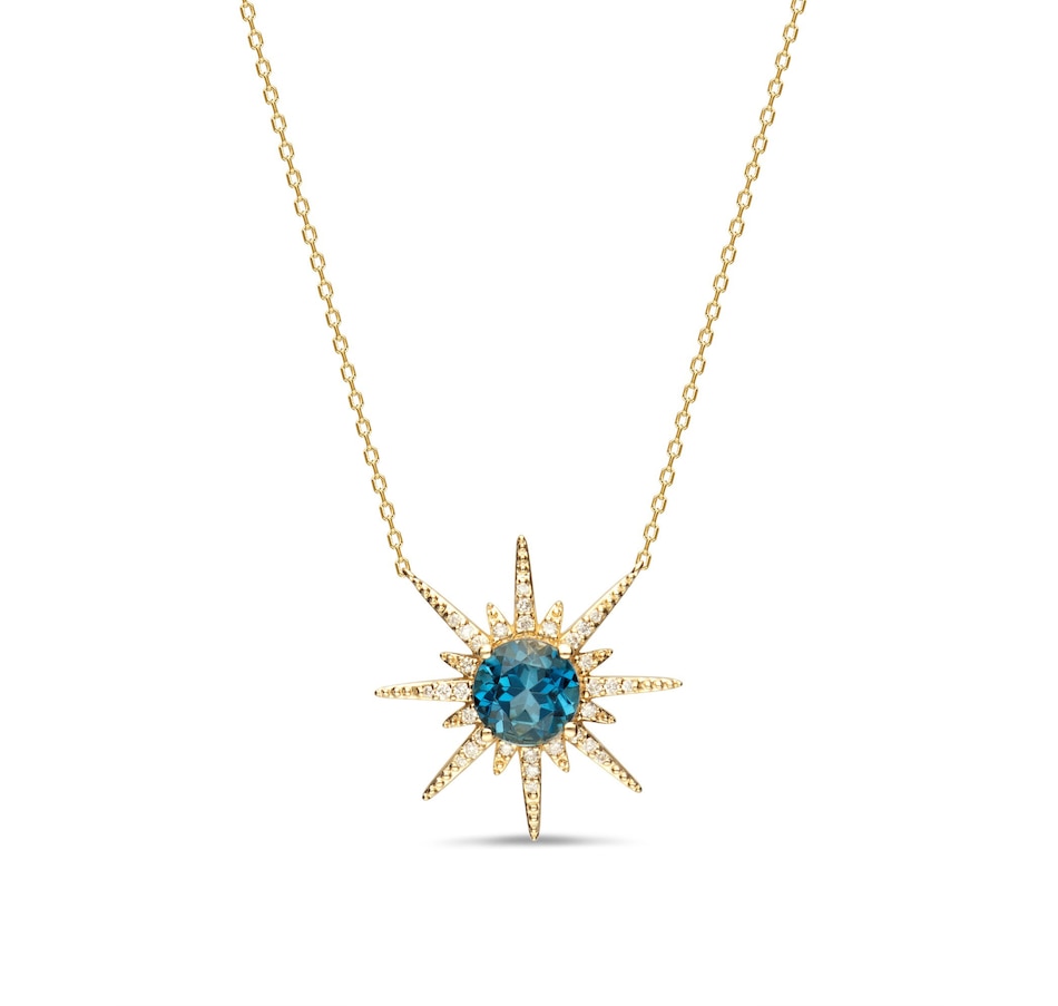 14K Yellow Gold London Blue Topaz and Diamond Starburst Necklace