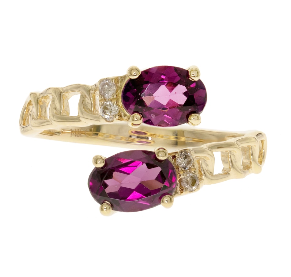 14K Yellow Gold Rhodolite And Diamond Bypass Chain Band