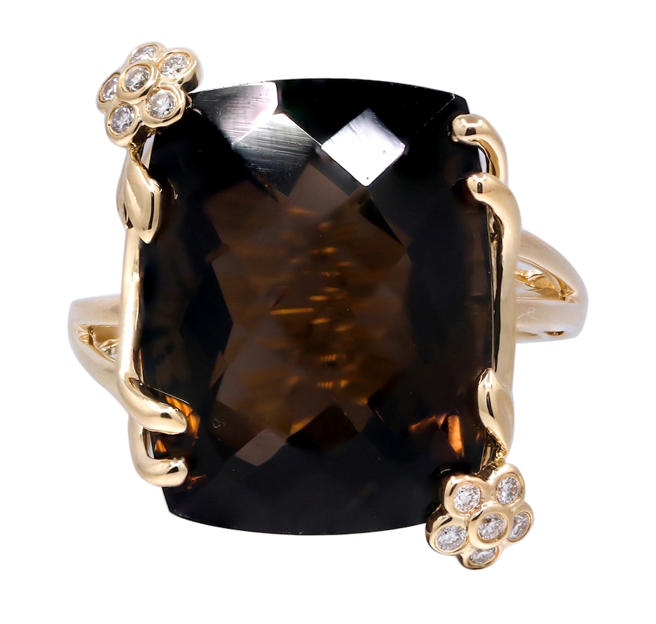 14K Yellow Gold Smokey Quartz and Diamond Ring