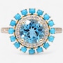 14K Yellow Gold Swiss Blue Topaz & Diamond Ring