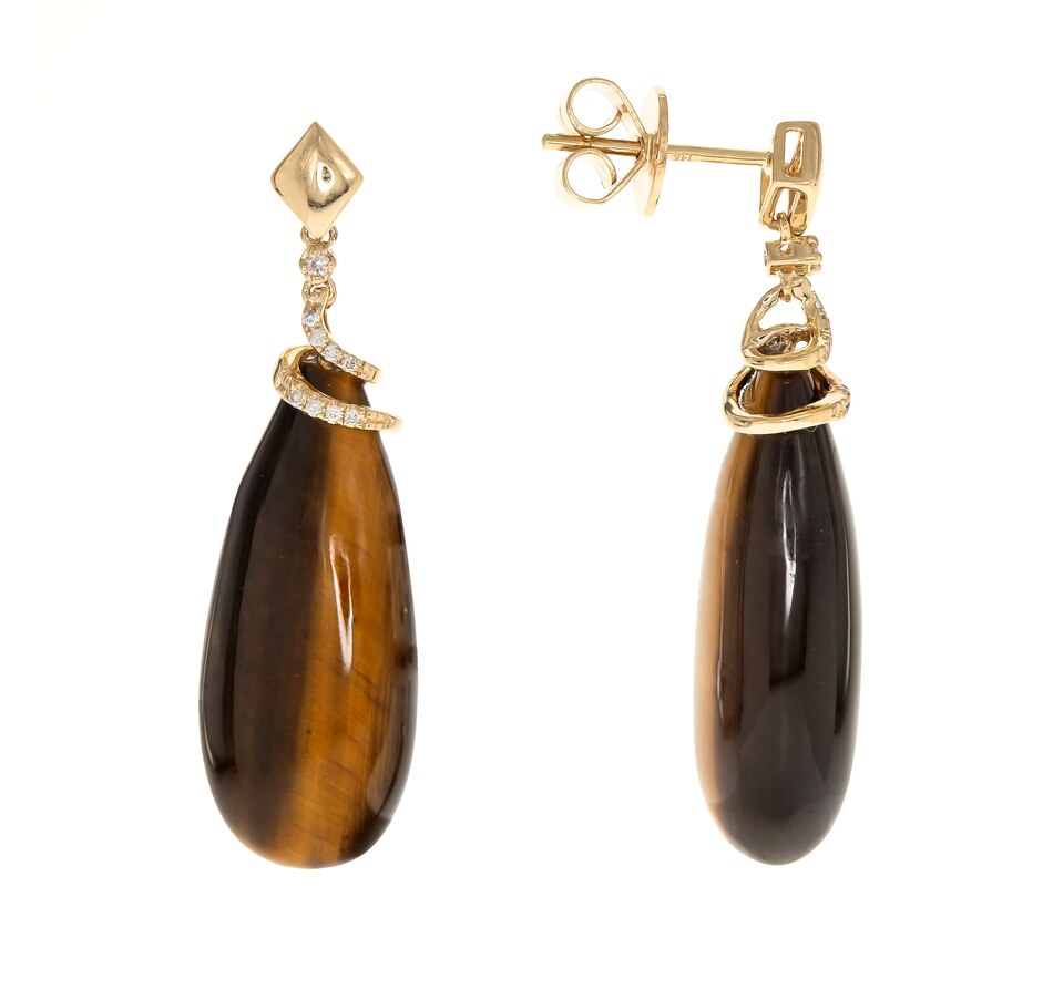 14K Yellow Gold Tiger Eye and Diamond Earrings