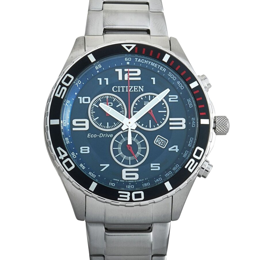 Mens Eco-Drive Brycen Stainless Steel Blue Dial Chronograph
