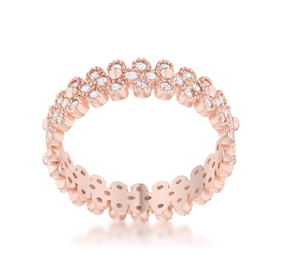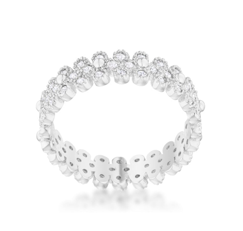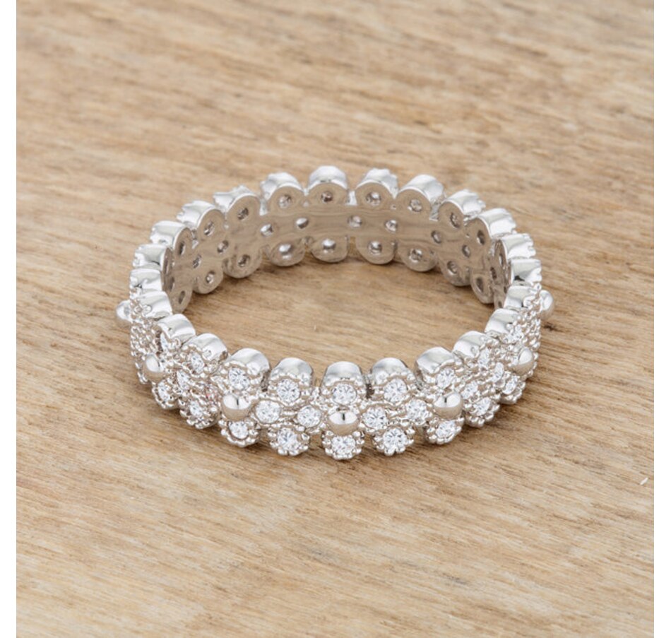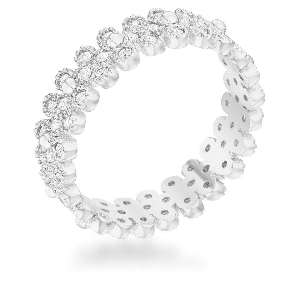 stones and a textu bezel setting accent a simple eternity ring adding bohemian subtleties to a classic design.
