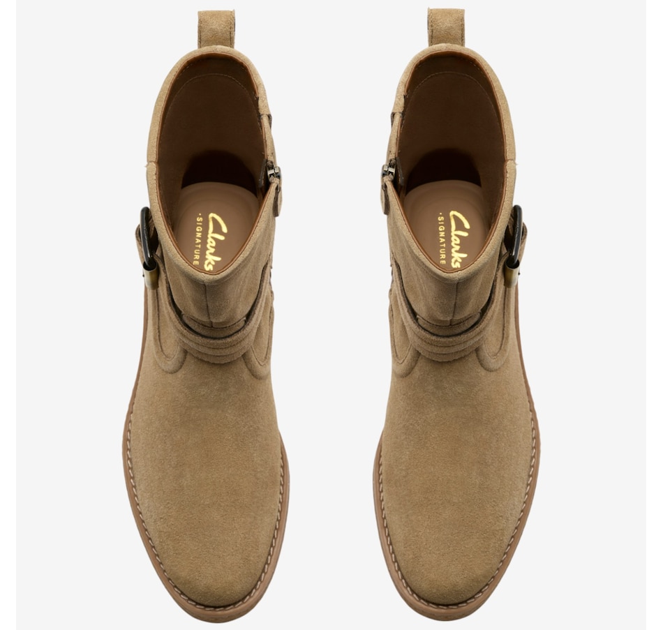 The Nella is an exceptional casual boot for this season, where timeless inspiration meets modern versatility. Drawing from Clarks favourites like the Clarkdale and the Cologne, this style is crafted from premium suede for a soft, luxurious feel. A sleek contemporary outsole pairs beautifully with biker-inspired hardware and a stitched strap, creating a look that’s effortlessly on-trend yet uniquely Clarks.