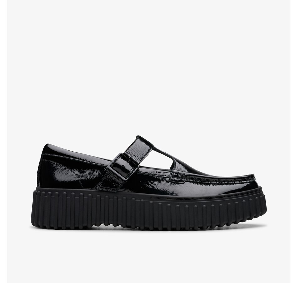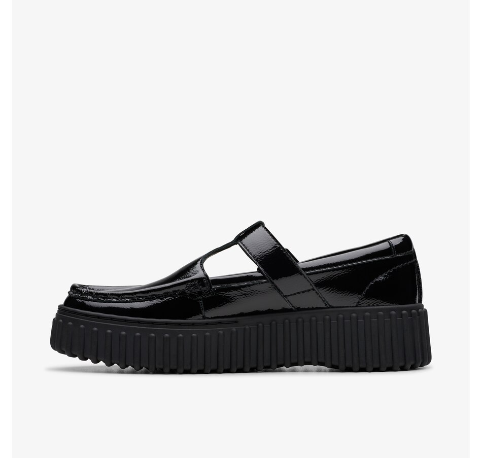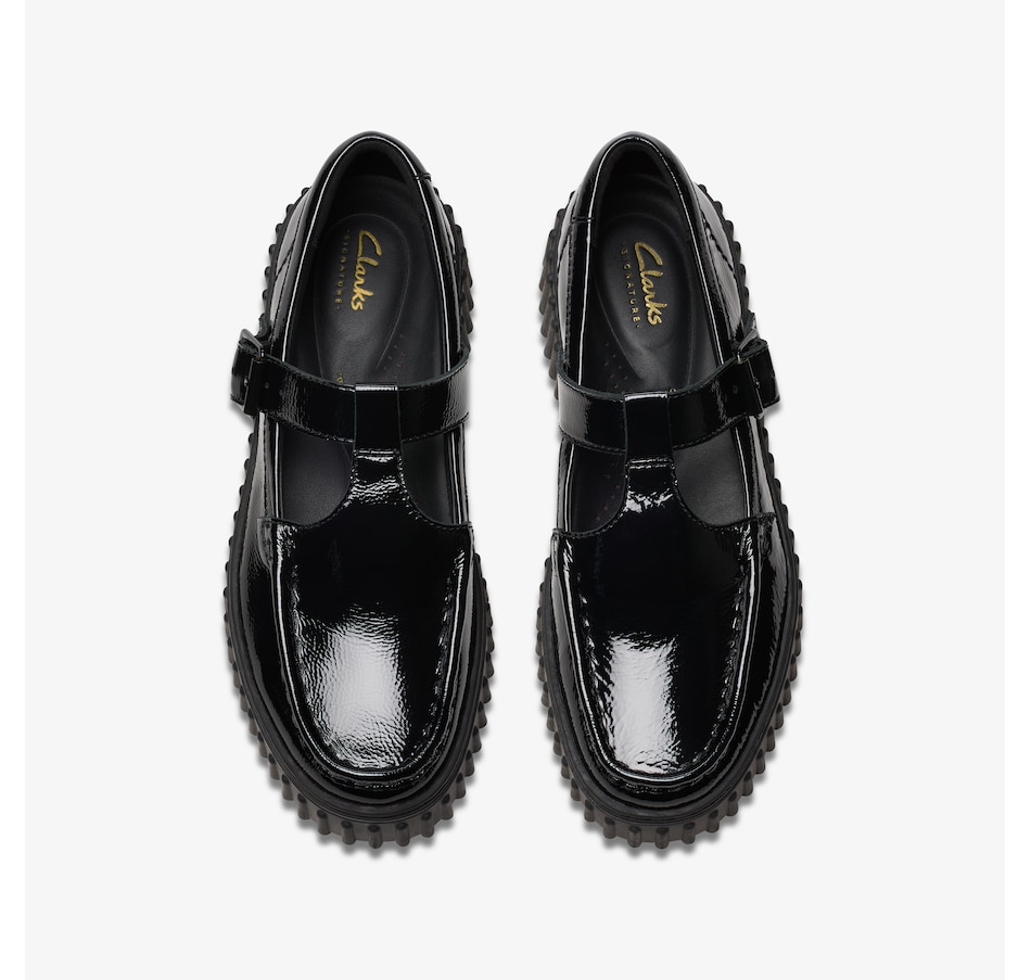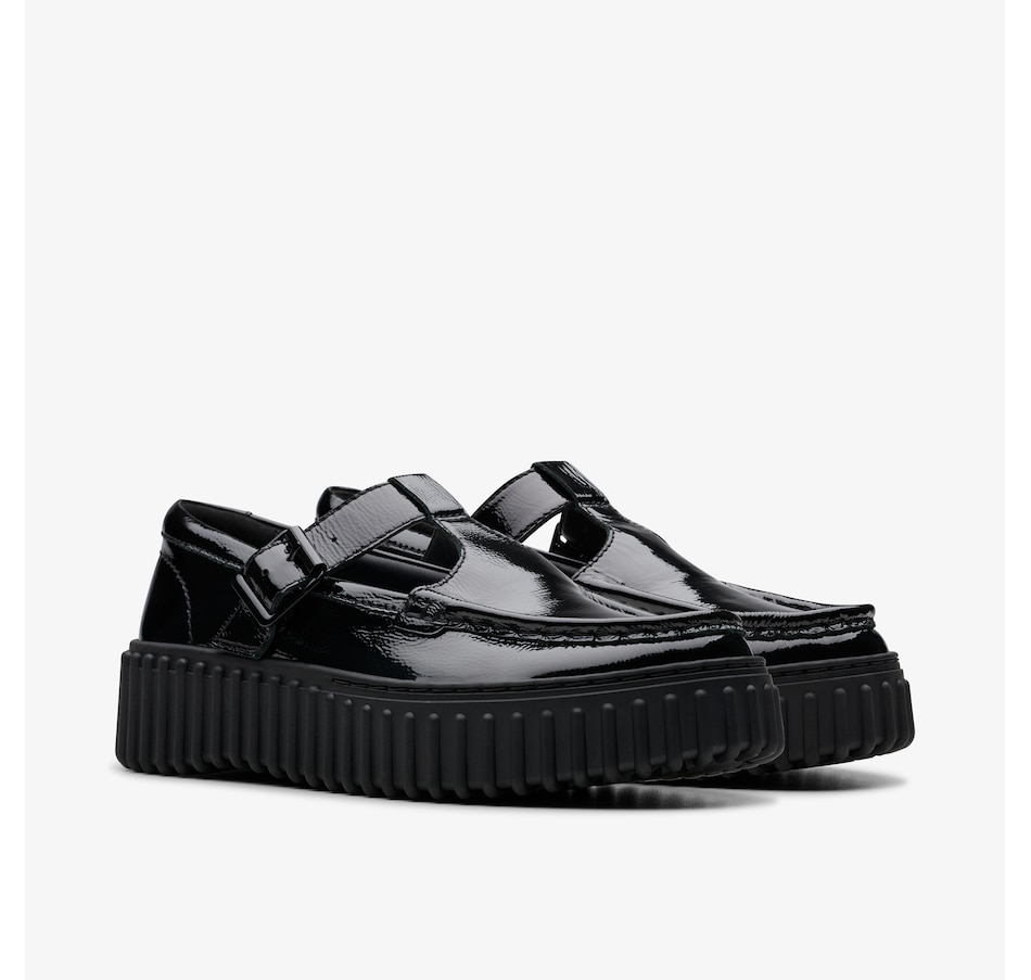 The bold, ribbed outsole that defines Clarks' Torhill Bar shoe is born from their archives, but feels every bit as contemporary today as it did as part of their '90s Big Gripper profile. A retro T-bar closure makes for effortless smart-casual wear, while a pillow-soft footbed and lightweight sole keep comfort at their core. Echoing Clarks' quality craftsmanship with its premium patent leather uppers, it's completed with intricate stitching and a sleek adjustable buckle.