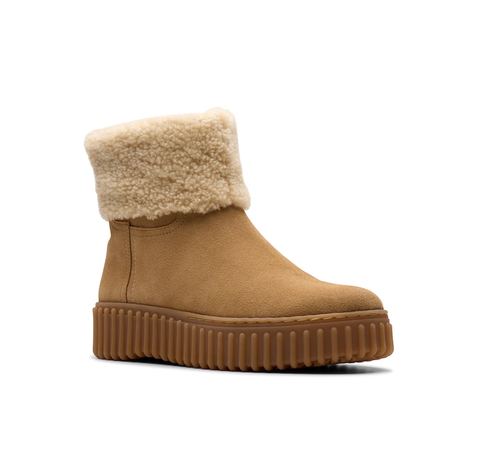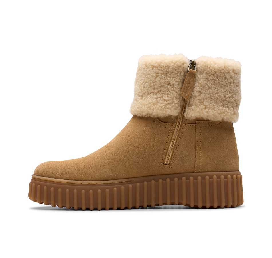 Fusing archival inspiration with a snug twist, the Torhill Turn is defined by premium suede uppers with a casual laid-back aesthetic. Taking design cues from Clarks own '90s Gripper profile with its chunky ribbed outsole, it's complete with cozy linings to wrap feet in exceptional comfort, from running errands to kicking up leaves. It finishes with a zip closure for easy foot entry.