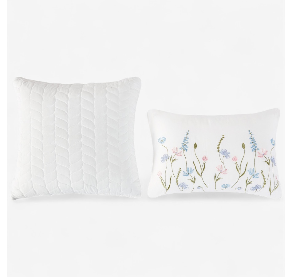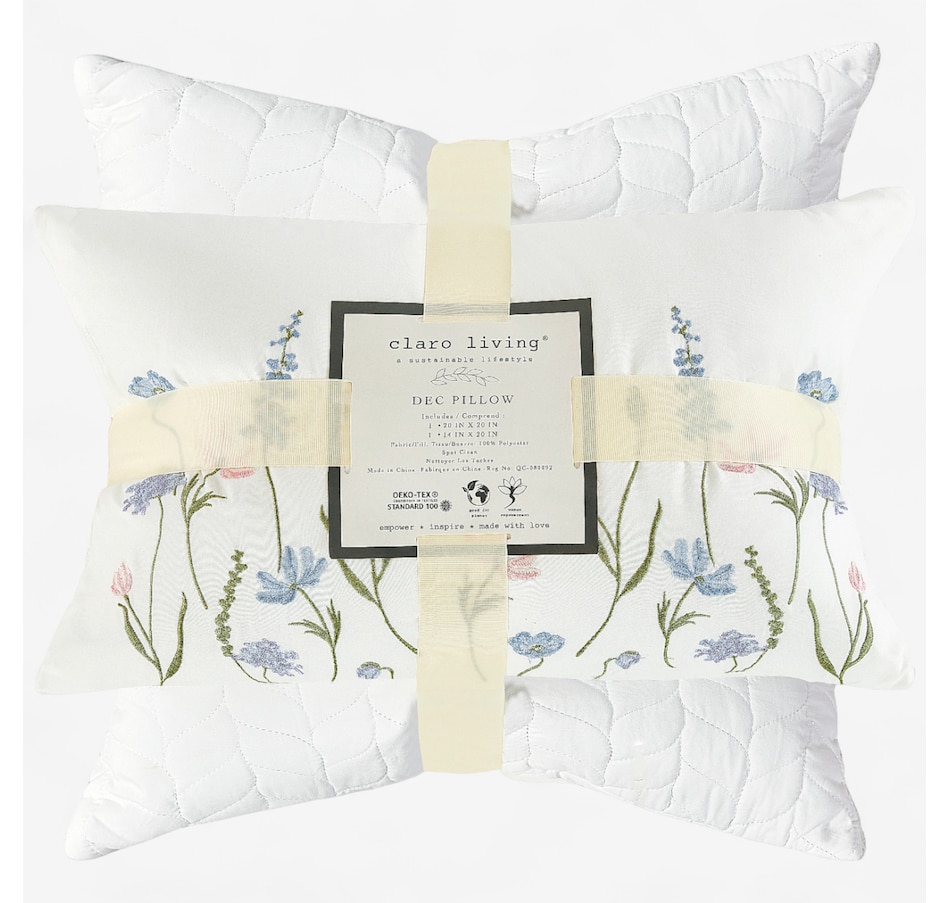 Decorate any room with this beautiful two-pack decorative pillow bundle from Claro Living. It consists of one quilted decorative pillow and one multi-colour botanical floral embroidery decorative pillow, both removable zipper covers for easy cleaning.