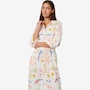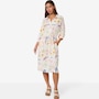 Stand out in this flowy shirt dress, featuring a lively print for eye-catching flair. Crafted from a soft linen blend, it offers refreshing comfort on warm days. It features a tie detail that defines the waist for a flattering silhouette while a classic collar adds a touch of polished charm.