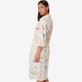 • Button-front with collar, 3/4 length sleeves, waist tie, 45'' long, pockets printed textured soft linen fabric