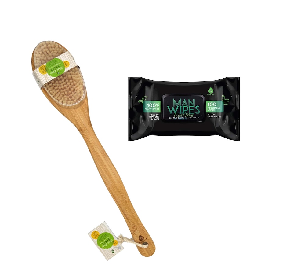 Upgrade your hygiene routine with the Pursonic Clean & Refresh Bundle, featuring the 12 Pack of Flushable Man Wipes and the Bath Body Brush with Long Bamboo Handle. Designed for a refreshing clean and effective exfoliation, this bundle ensures your skin feels revitalized and invigorated.1200 Flushable Man Wipes (Mint Scented) - 12 PackTrust 1200 Flushable Wipes for a refreshing clean! Mint and eucalyptus-infused, extra-large wipes are alcohol-free, durable, and gentle on skin. Enjoy the ultimate clean with flushable, sewer-safe, 100% plant-sourced wipes. Features:1200 Flushable Wipes - Incredible Value!Extra Large Flushable Man Wipes: 7x7 inches, durable, and 100% flushable with plant-sourced fibers.Mint Fresh Scented: Infused with mint, Eucalyptus Citriodora oil, Aloe Vera & Vitamin E for ultimate freshness and protection.Gentle and Safe: Made with plant-sourced fibers, no harmful parabens, alcohol-free, and suitable for all body parts.Bath Body Brush With Long Bamboo Handle  Scrub hard-to-reach areas with Pursonic's Bamboo Bristle Bath Brush. Its long, hand-crafted bamboo handle enables deep cleansing. The cruelty-free bristles gently exfoliate, revealing smooth, radiant skin. Avoid use on irritated, broken, or damaged skin. Discontinue if irritation occurs.Features:100% Natural Bamboo HandleRemoves Dirt, Toxins & Dead Skin CellsNylon Bristle: Soft, synthetic bristles gently scrub skin cleanMade from Recycled & Sustainable MaterialsLong Bamboo Handle Design: Clean hard-to-reach areas effortlessly100% Recycled PackagingAchieve the ultimate cleanse and refreshment with our Ultimate Cleanse and Refresh Bundle! From the refreshing mint-scented flushable wipes to the deep-cleansing bamboo bath brush, this bundle ensures you stay clean, fresh, and rejuvenated from head to toe.