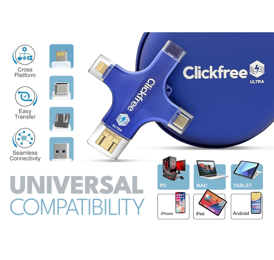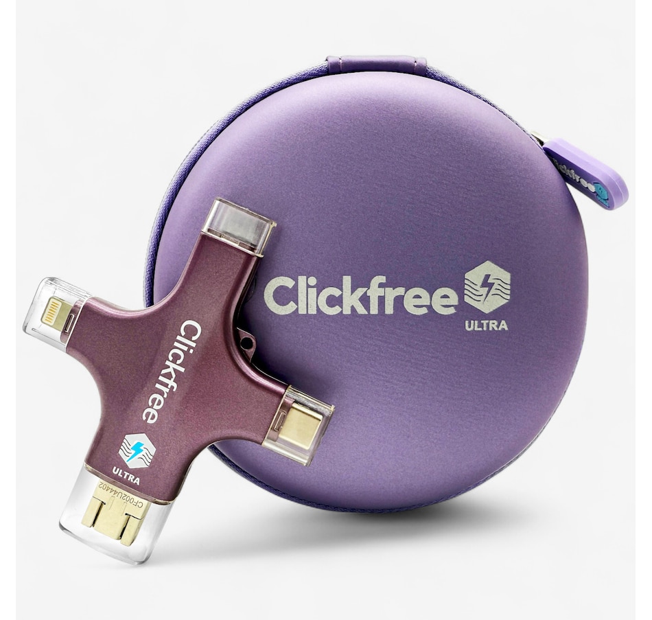 With lightning-fast transfers, universal compatibility and an AI photo editing suite, ClickFree Ultra offers a simple, cable-free solution to back up, organize and enhance your memories.