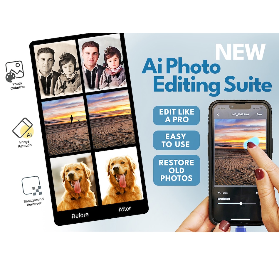 • AI features: includes 100 AI photo editing credits for background removal, colourization, restoration