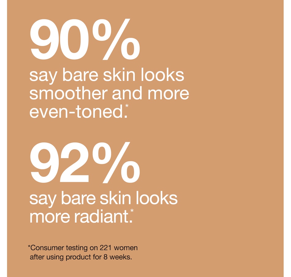 • 91% saw reduced imperfections on bare skin—dark spots, discoloration, age spots and acne marks