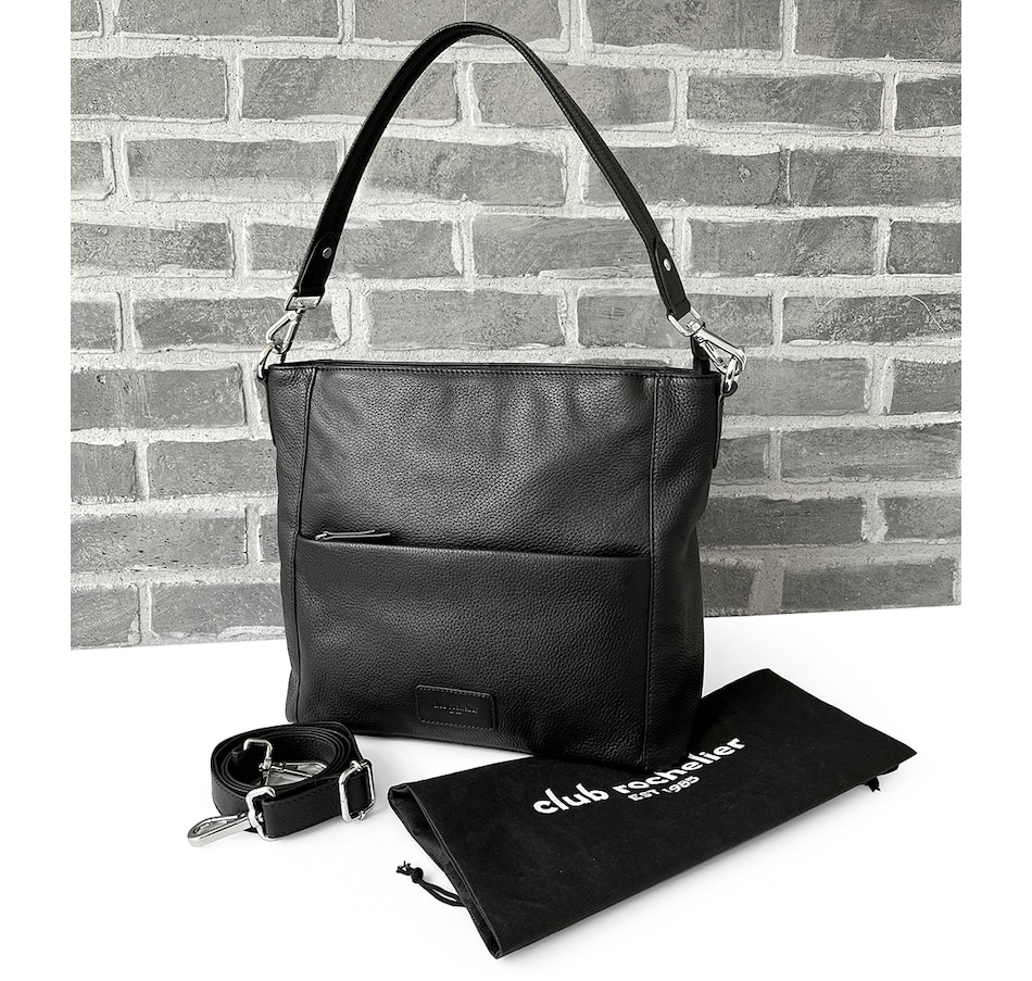 • Club Rochelier Ladies' Large Leather Multi Zip Pocket Hobo Shoulder Bag