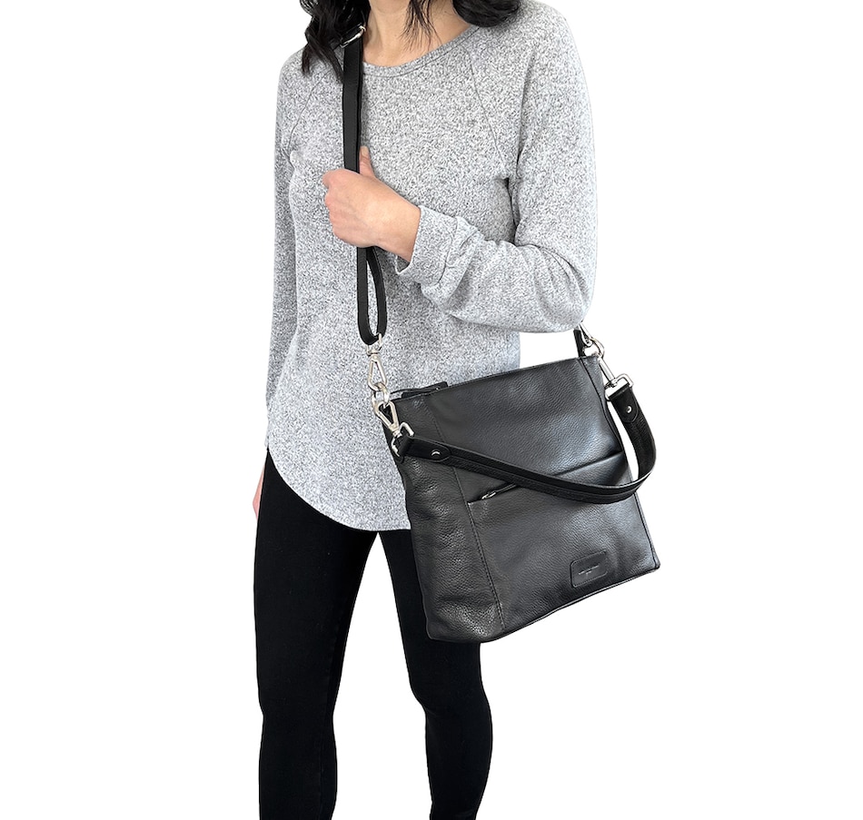 Ladies' Large Leather Multi Zip Pocket Hobo Shoulder Bag