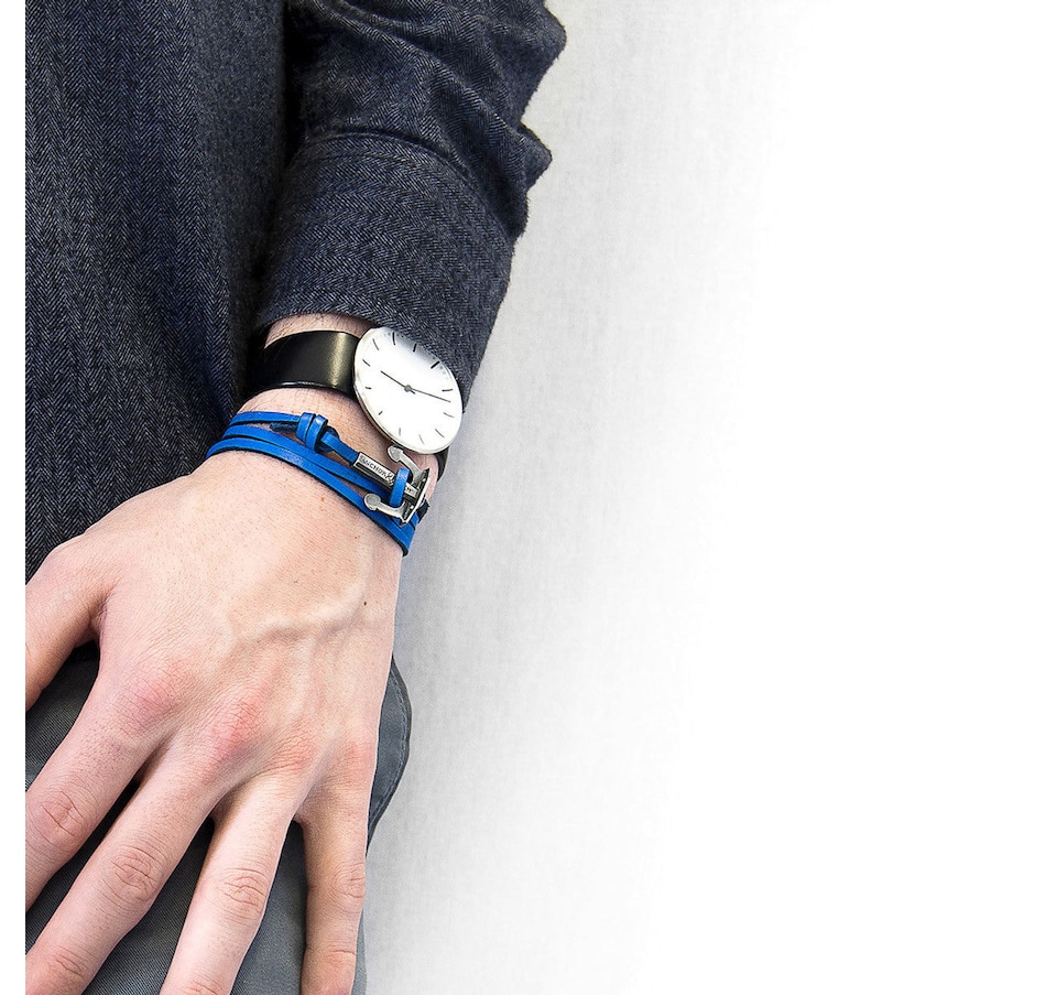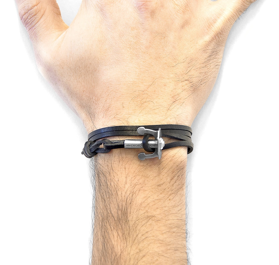 The Coal Black Union Anchor Silver and Flat Leather Bracelet was both designed and skilfully handcrafted completely in Great Britain. Combining British craft manufacturing with a discerning modern-minimalist style, this ANCHOR & CREW bracelet features:Genuine and natural square-shaped leather, with two sides of differing textures: 1. Smooth Flat, 2. Ruffled Fibrous (GB)Secure solid .925 sterling silver anchor (GB) SIZINGThis bracelet is one size fits all, with the leather able to extend or tighten to suit your wrist size. To take the bracelet on or off your wrist, simply slide the one adjustable knot around the leather to make the loop size smaller or larger, and once set, keep the loop size consistent and continue wearing by easily unhooking the clasp from the loop. Less is More.