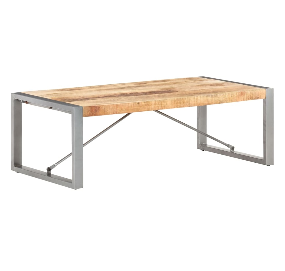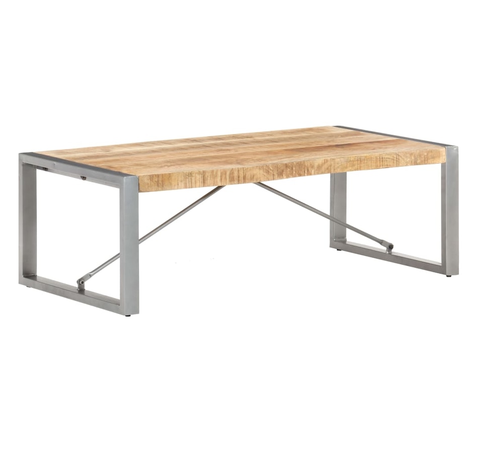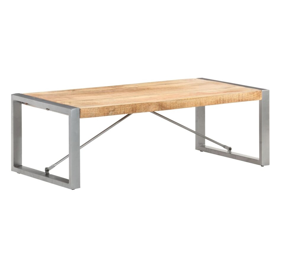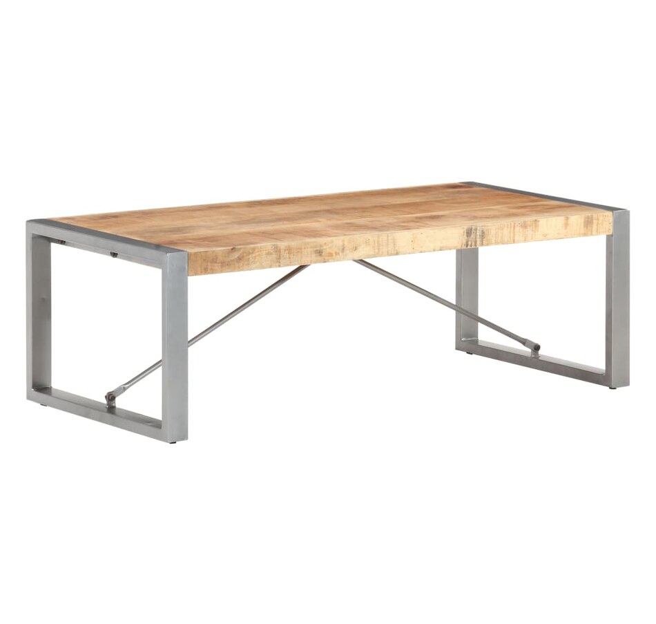 This wooden coffee table adds an industrial look to your living room or any room you place it in. This coffee table is made from solid raw mango wood, a tropical hardwood with the strength to support weight. It also resists the wear and tear of time, making it stable and durable. Powder coated steel legs provide additional stability to this table. Additionally, this side table also serves as an end table, side table or living room table, etc. Important note: Colors and grains may vary from piece to piece, making each piece unique ; delivery is random.
