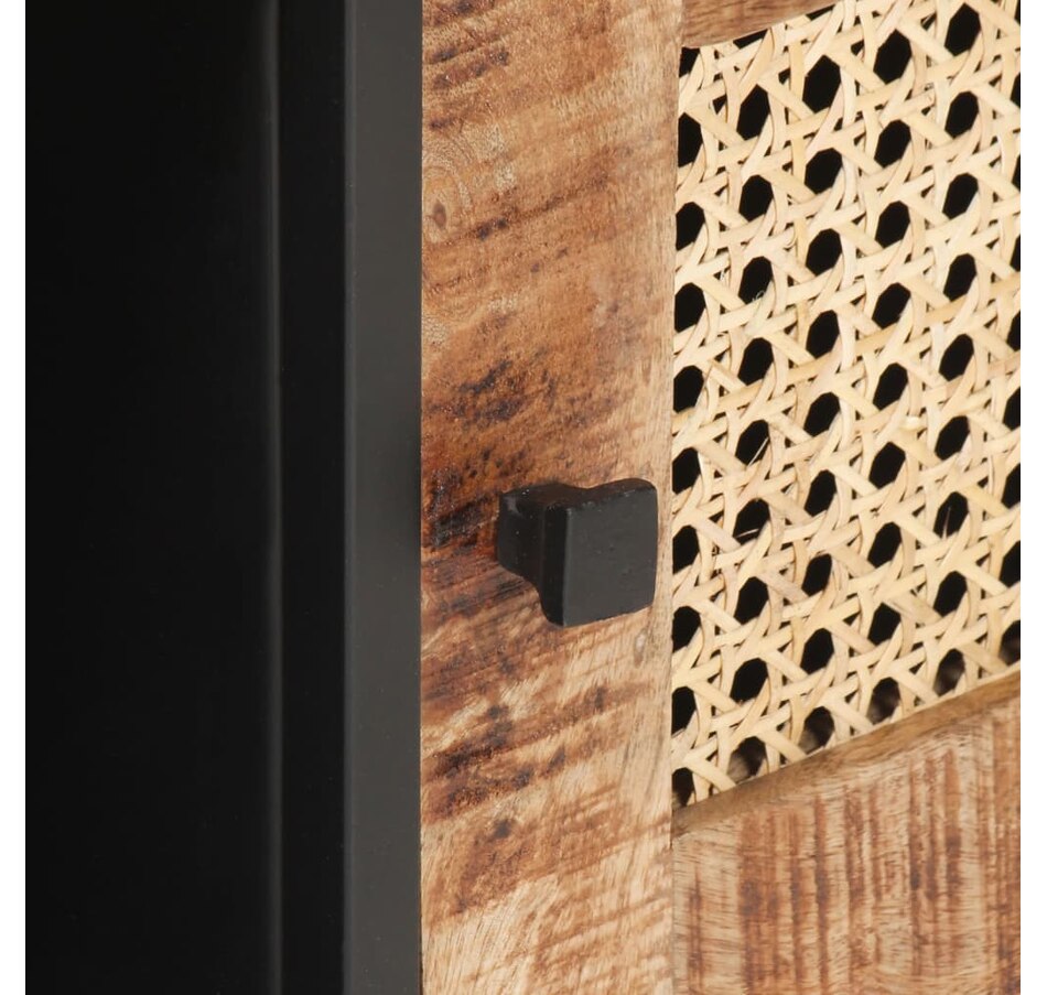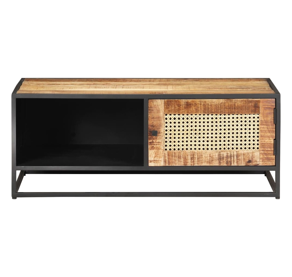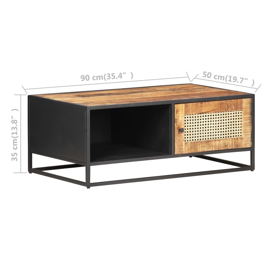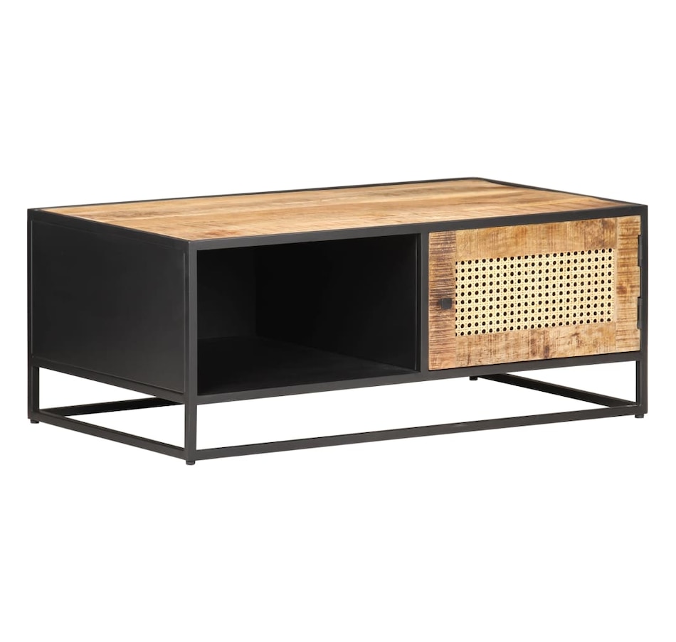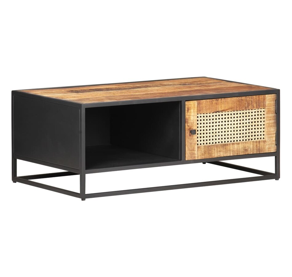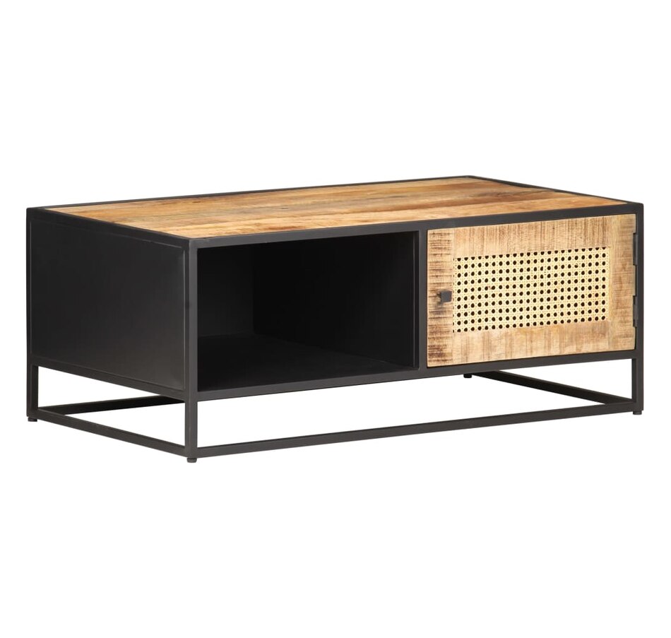 If you're looking for a touch of rustic charm to add to your interior decor, this solid mango wood coffee table will be for you. Solid mango wood is a tropical hardwood. It has on the one hand the strength to support the weight, and on the other hand resists the wear and tear of time. In addition, the exquisite craftsmanship and beautiful wood grains make each piece of sofa tables slightly different from each other. The side table is equipped with ample storage space, so you can display or keep all the items you want well organized. The iron frame contributes to its robustness and stability. Additionally, the side table features a hand-woven cane pattern on the door, adding to its rustic charm. Important note: Colors vary from piece to piece, making each coffee table in unique wood.