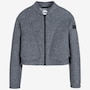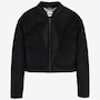Soft to the touch thanks to the flocked wool scuba fabric, this bomber-style cropped jacket is perfect for cool days. Front stitching accentuates the side pockets, while ribbing at the back hem brings character to an essential piece. It's ideal for mild climates and the change of seasons with light heat insulation and moderate protection from the cold.