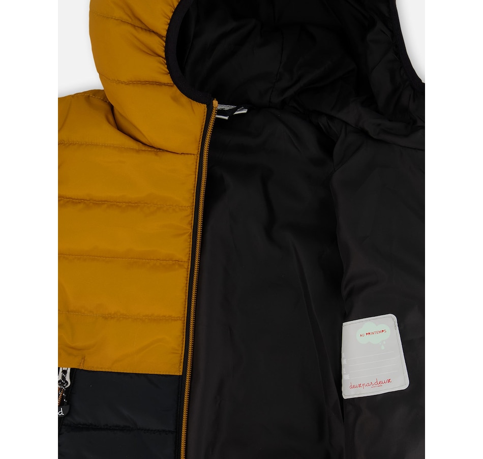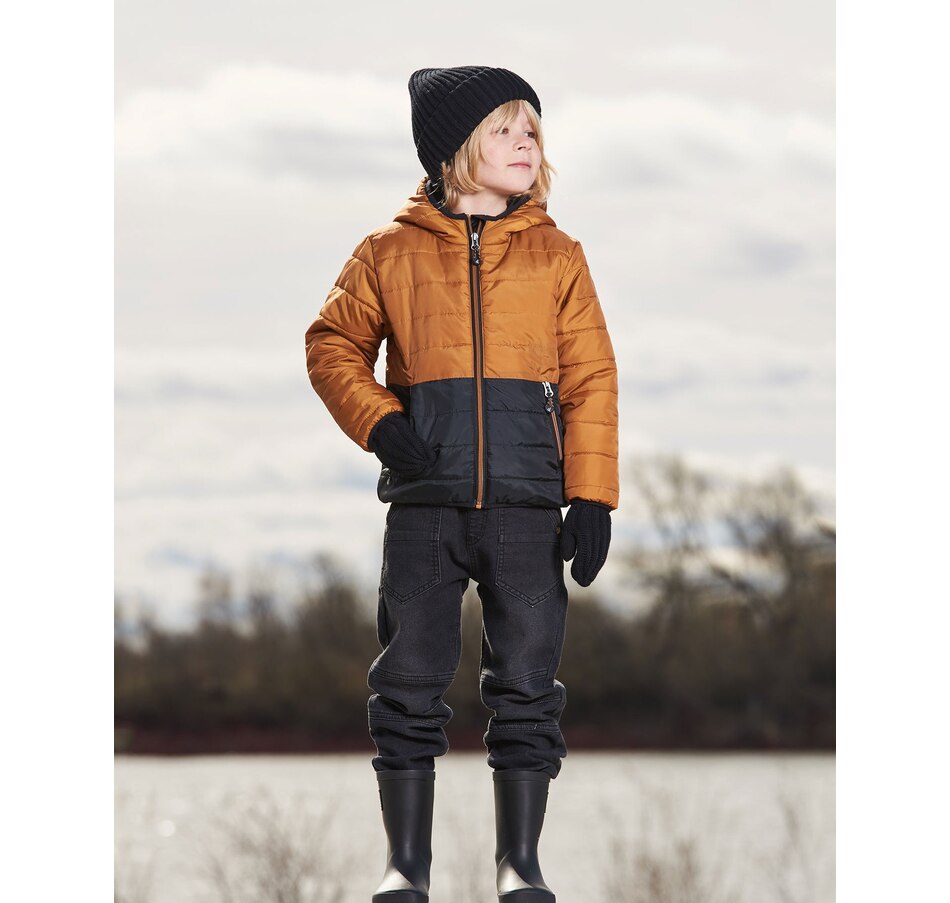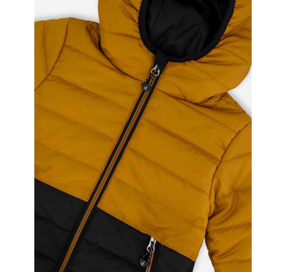 Our Colorblock Quilted Mid-Season Jacket Brown and Black is perfect for those chilly days and nights between the seasons. With insulated horizontal quilting, this hooded jacket features a cool two-tone design with functional zipper pockets and a TEFLON coating that makes it water repellent.