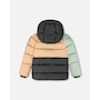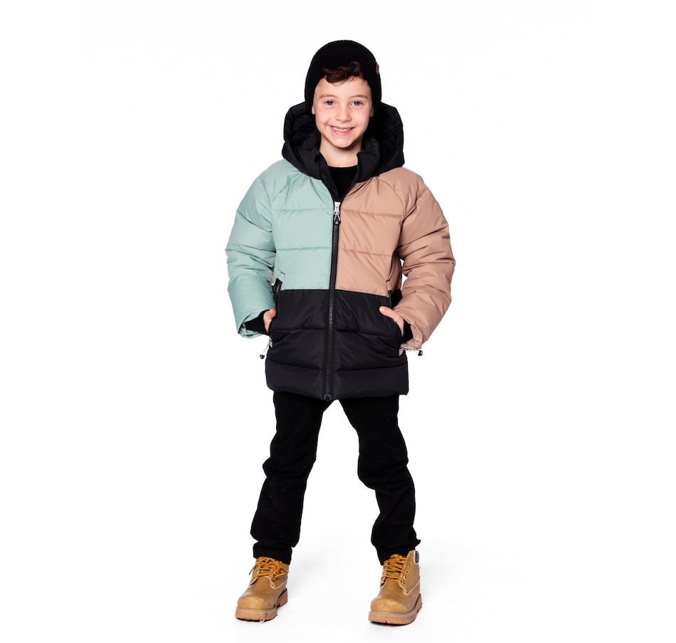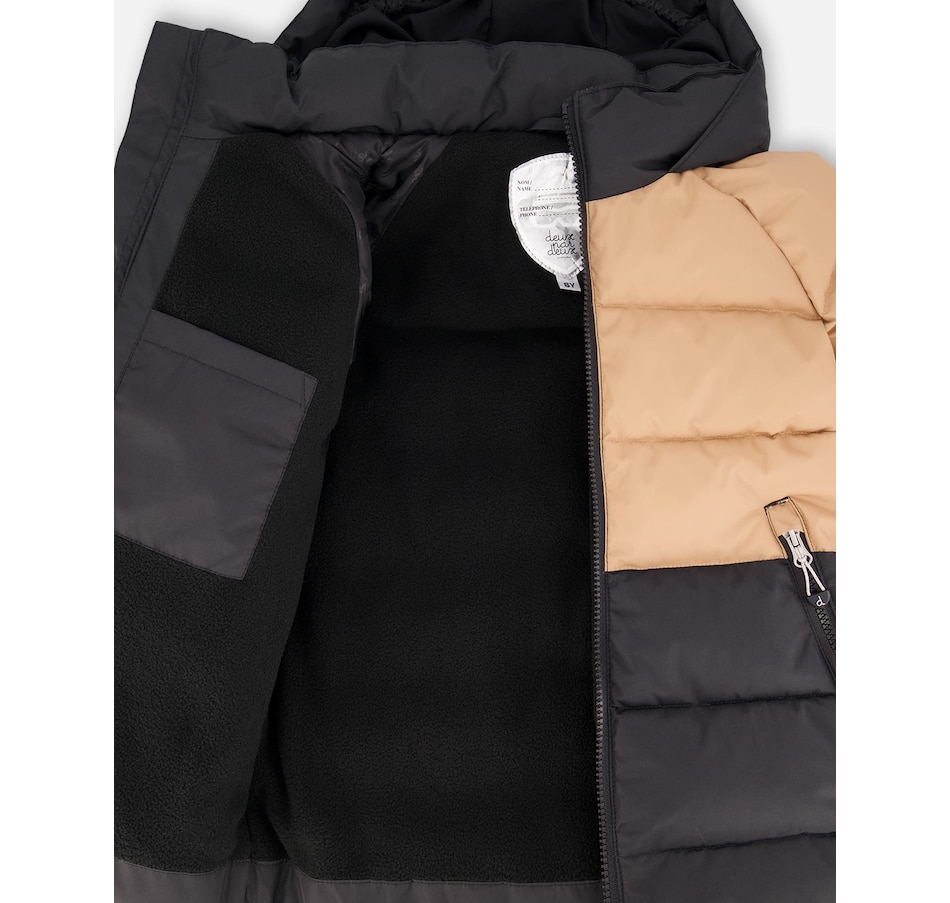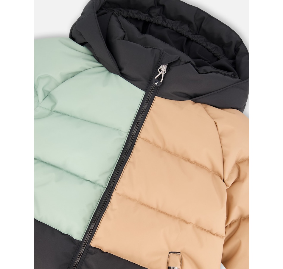 Coated for waterproofing and insulated for protection in temperatures as low as -30°C (-22°F), this colorblocked puffer jacket is designed for maximum warmth during short winter outings and outdoor activities. Lined with soft fleece inside the jacket, collar, and hood, this quilted coat includes a protective wind flap, chin guard, extendable cuffs, and a snow guard and removable faux fur trim at the hood.