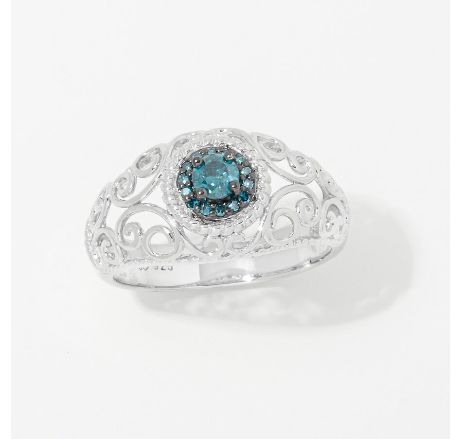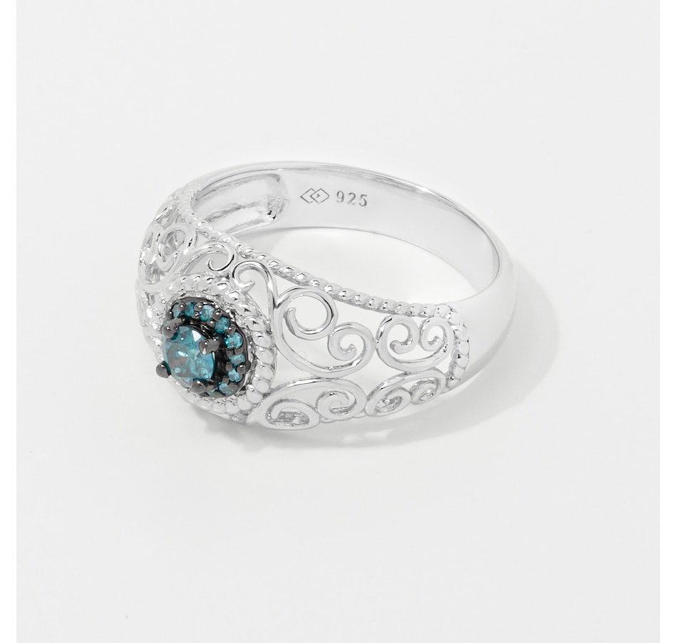 • (1) round, prong set & faceted blue diamond (0.20 av. ctw)