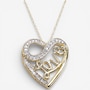 This pendant features sterling silver accented with yellow gold and a white rhodium plate. The design showcases prong‑set, faceted white diamonds arranged in a heart shape. The matching cable chain completes the look with classic appeal.