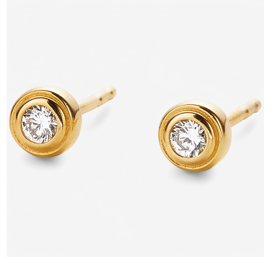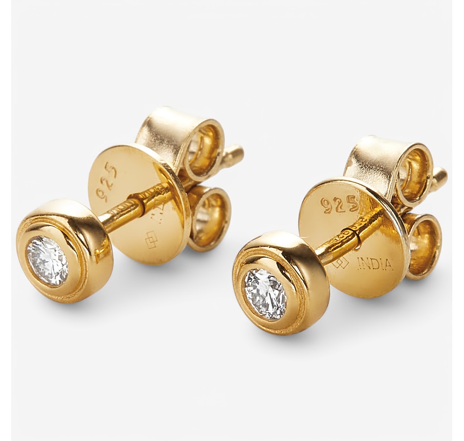 • (2) round, bezel set & faceted white diamonds (0.10 av.ctw)