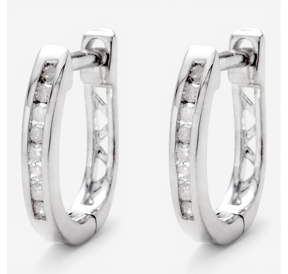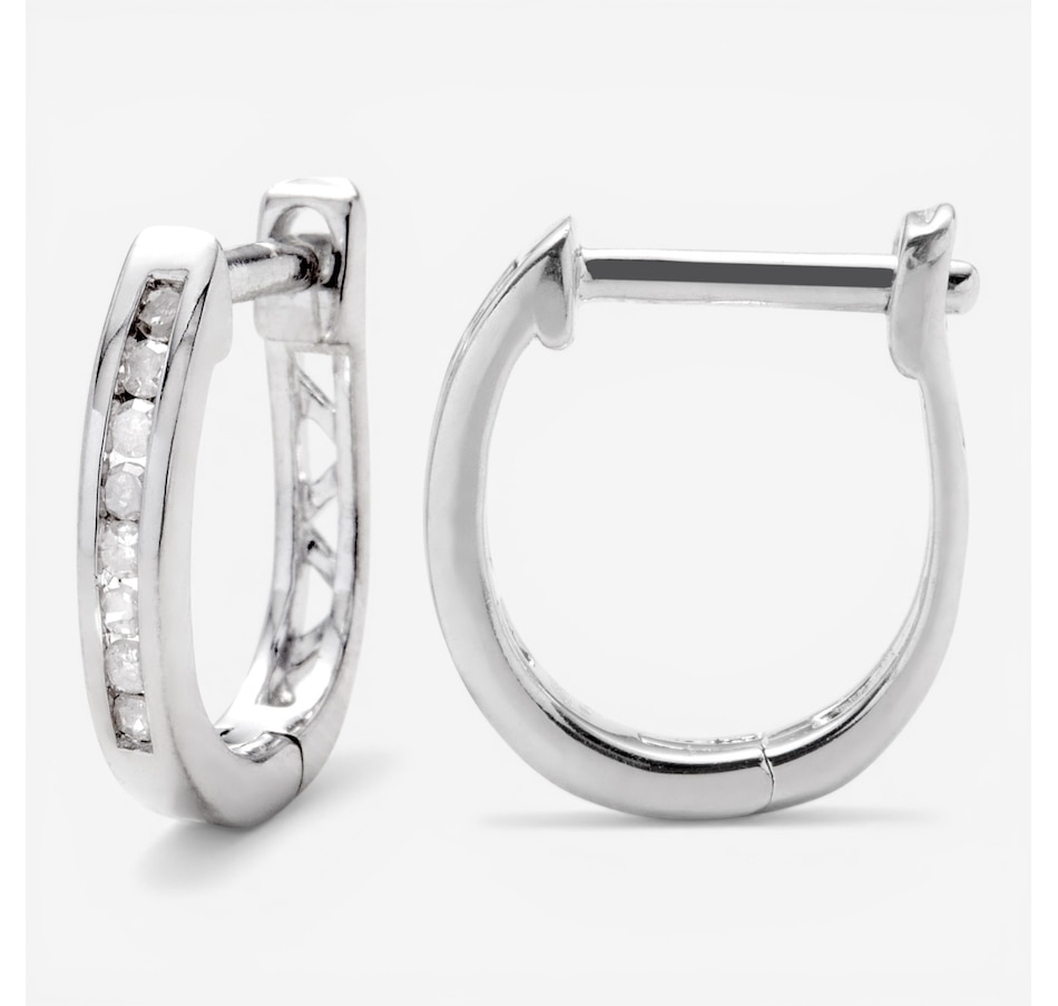 These classic hoop earrings offer subtle brilliance through a sleek channel‑set diamond design. Crafted in sterling silver, the compact silhouette delivers refined sparkle with easy, everyday wearability. Simple and elegant, they’re a versatile addition to any jewellery collection.
