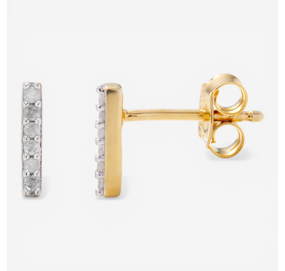 These sleek bar‑style stud earrings deliver understated sparkle with a clean, modern profile. The row of prong‑set white diamonds adds refined brilliance in a minimalist sterling silver design. Subtle and versatile, they’re an easy choice for everyday wear or effortless layering.