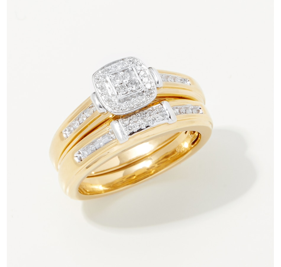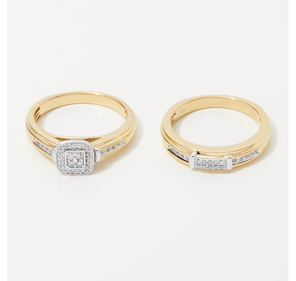 Yellow Gold Over Sterling Silver 0.20 ctw Bridal Rings
