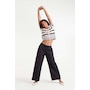 • Relaxed fit, wide leg, side pockets, mid-rise