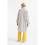 • Shirt collar, drop shoulder, side pockets, five-button closure hidden by front placket