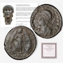 After reuniting the two halves of the Roman Empire in 324 CE, Constantine declared the city of Byzantium to be its new capital. Although it was far from the old capital (located in what is now modern-day Turkey), it was strategically selected for political and economic advantages. More than just marking an event, the coins effectively served as propaganda to ensure the change in the capital widely known and to emphasize continuity and stability.