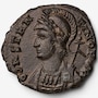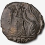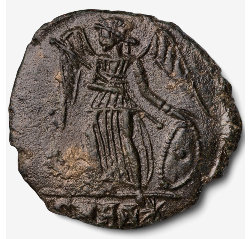 The new capital was initially called "Nova Roma," but on May 11, 330 CE, the city was renamed "Constantinople" in honor of the emperor. To commemorate this event, two different coin types were minted: one celebrating the new capital of Constantinople and the other celebrating old Rome. The accompanying coin celebrates the new city of Constantinople and features a "Constantinopolis" personification of the city with a Victory goddess.