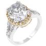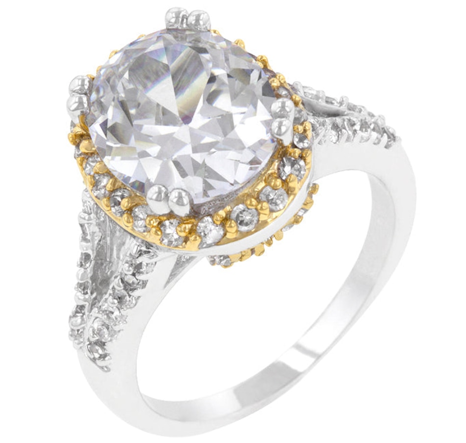 The Coronation Ring features a huge oval cut zircon set in a halo style. Our genuine and 18k gold finish is achieved using an electroplating process that coats the item with heavy layers of and 18k gold and color-treated to give that perfect two-tone look.