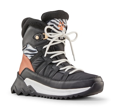 Get ready for the coming winter months in style with the Fresno, a mid-calf nylon and synthetic snow boot from Cougar. It features a classic round toe, a cozy faux fur collar, and a front lace closure. Designed with a waterproof base, Thermolite insulation and temperature rated to an impressive -24°C, you've got the coldest days on the calendar covered! Tackle the cold in style with the Fresno; get yours today at a fantastic showstopper value, right here at TSC!