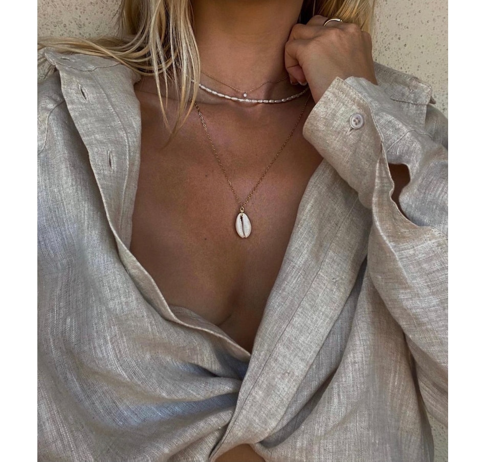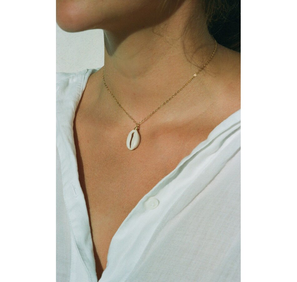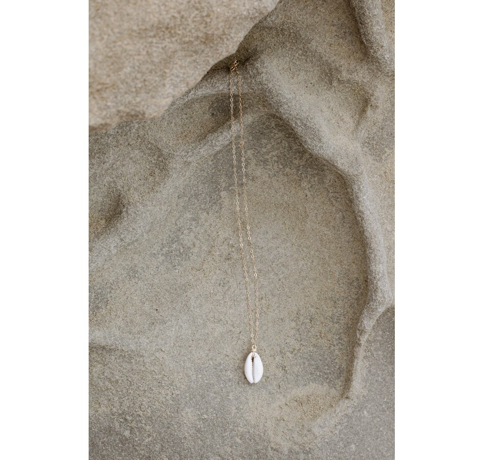 Layer with our vintage pearl necklace as seen on the model or wear alone.Available as 14", 16", or 18" chain 2" extension. Custom length available upon request - please email urthandsea@gmail.comCowrie shell wire-wrapped on a 14K gold-filled chain. Handmade in California.