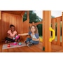 Outdoor playsets from Creative Cedar Designs come ready-to-assemble with everything you need to create the perfect, play-safe swing-set experience! The Timber Valley swing-set features a covered, 20-square-foot play tower with pitched roof assembly and a built-in sandbox below, swings for up to four at a time, and a variety of other activities, so kids, family and friends can enjoy the backyard swing set together. Whether your child would rather be scaling the rock wall, barrelling down the slide, reaching new heights on the swing set or simply enjoying the view, the Timber Valley playset is packed with activities to encourage hours of rigorous playtime!