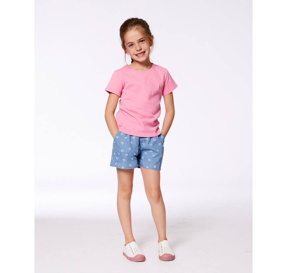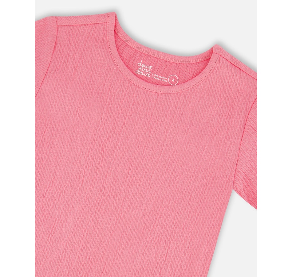 A soft crinkle finish adds texture and playful charm to our Crinkle Short Sleeve Top Candy Pink. In a classic tee silhouette with short sleeves and a round neckline, this top is easy to mix and match with a variety of different jeans, shorts, skirts, and leggings. Team it with a printed chambray short or a checked crinkle bottom for a sweet head to toe look!
