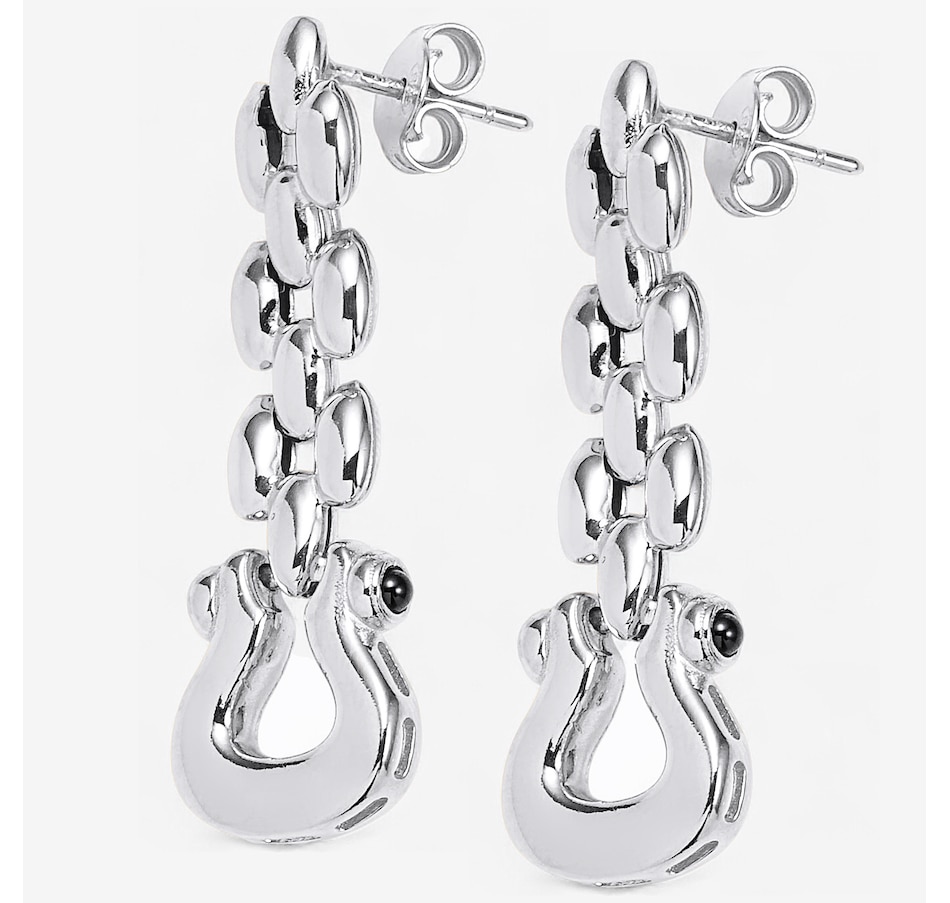 Sterling Silver Panther Earrings With Horseshoe Element and Black Spinel