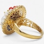 Sterling Silver White Mother of Pearl Flower With Red and Blue Paste Ring