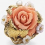 Sterling Silver/Yellow Gold Plate Pink and White Mother of Pearl Flower with Rose Paste Ring