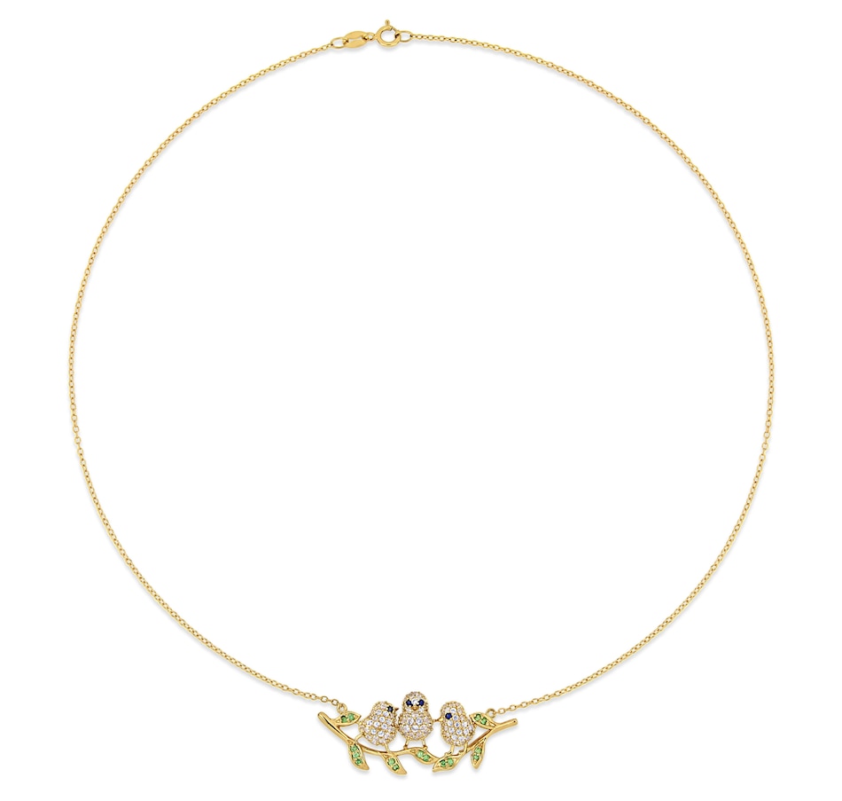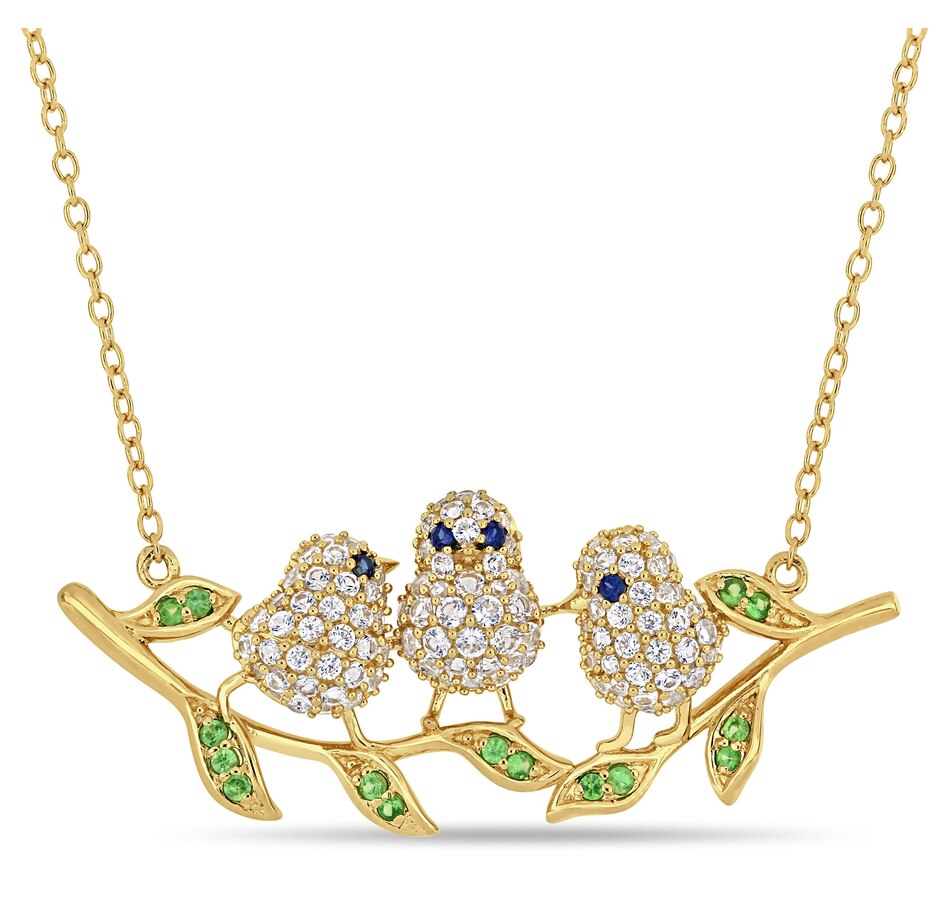Yellow Silver Tsavorite and Multi Color Created Sapphire "Family" Necklace With Chain
